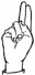 На ћирилици написано НИКОДИЈЕ БАЧАНИН састоји се из 15 слова [?]. Исписано ћириличном једноручном азбуком за глувонеме:
